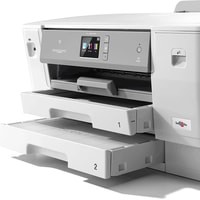 Беспроводной цветной струйный принтер HL-J6000DW поддерживает формат A3 и отличается быстрой печатью первой страницы (менее 6 секунд). Он оборудован емкими лотками для бумаги (загрузка до 500 листов), совместим с чернильными картриджами повышенной емкости и обеспечивает цветную печать профессионального уровня — то, что нужно для бизнеса.