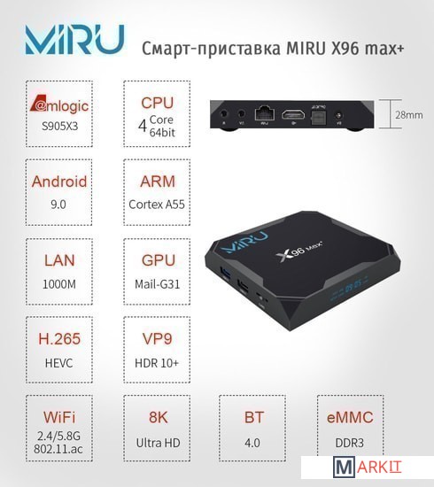 Markit » Медиаплееры и ТВ-приставки » Смарт-приставка Miru X96 Max+ 4ГБ/32ГБ